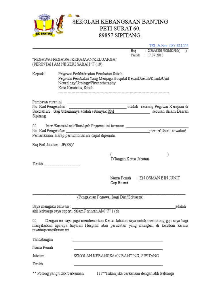 Surat Pengecualian Pembayaran Hospital Sk Banting Pdf